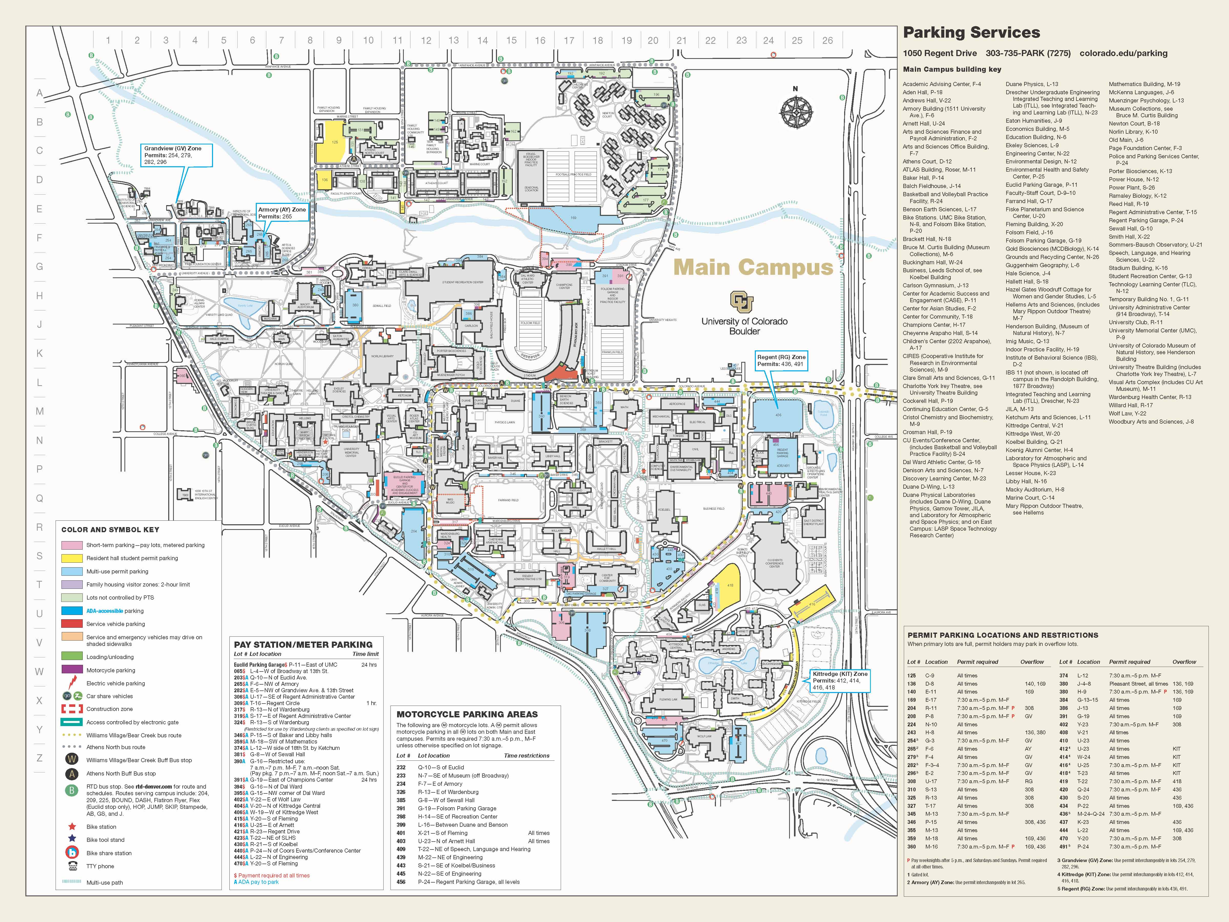 Parking: There is limited visitor parking on campus. The garage closest to Norlin Library is the Euclid Parking Garage, and there is also ADA parking available along Pleasant Street and Macky Drive. Visitor parking is indicated in pink and ADA parking is indicated in dark blue on the campus map below.